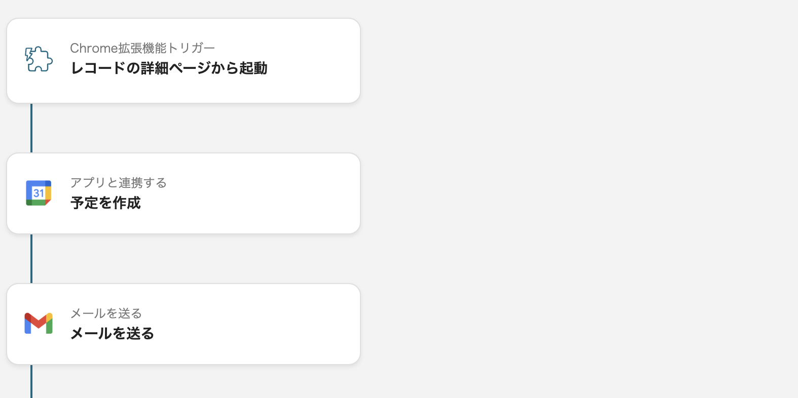 Salesforce内の顧客情報をもとに、会議予定をGoogleカレンダー側に自動登録し、作成した会議URLをGmailで送信することで実現が可能です。