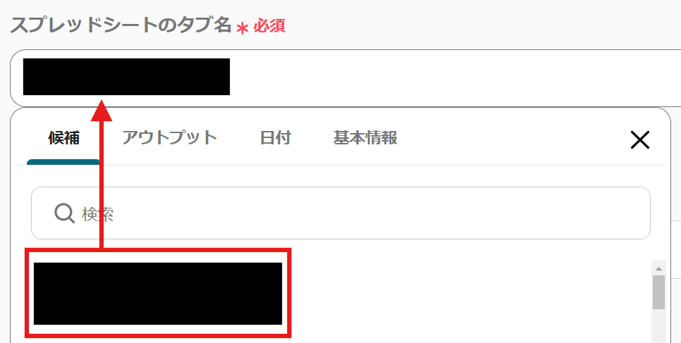 スクロールし、「スプレッドシートのタブ名」も同様に設定しましょう。