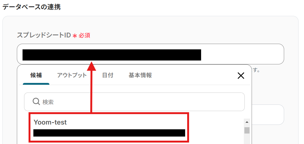 候補は枠内をクリックすると表示されますので、該当するIDを選択してください。