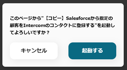 8.「起動する」をクリックすると、Salesforceから指定の顧客をIntercomのコンタクトに登録できます。