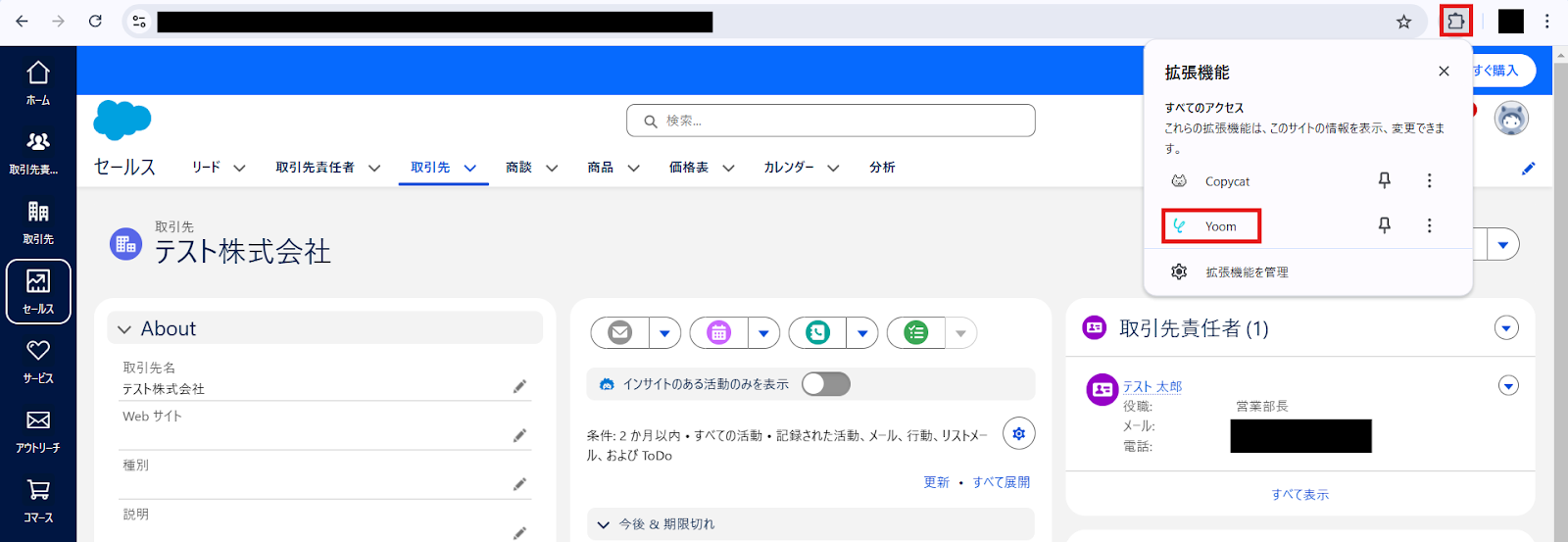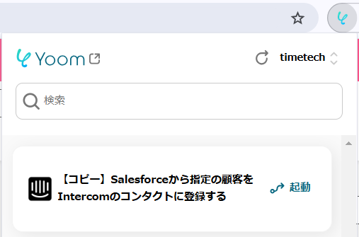 その後、右上の拡張機能のアイコンをクリックし、Yoomを選択します。