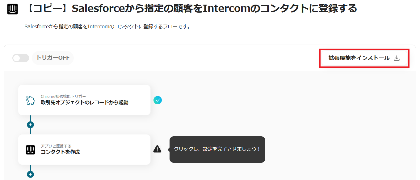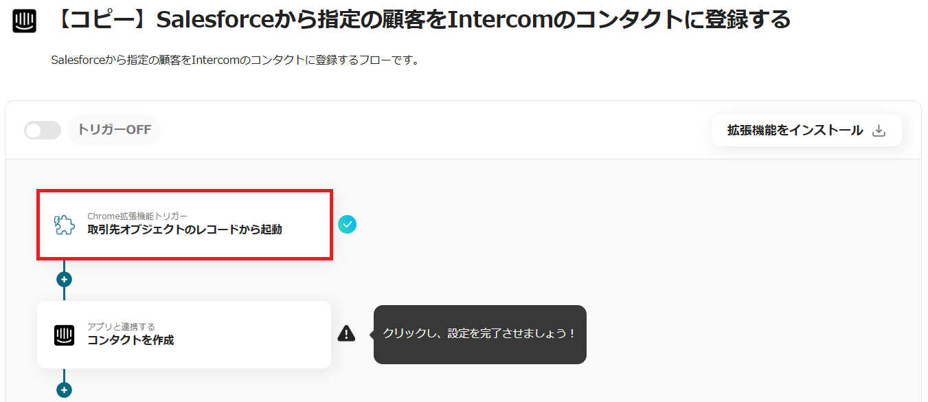 このフローは、Chrome拡張機能をトリガーに使用することで、Salesforce上から直接トリガーを起動させることができます。