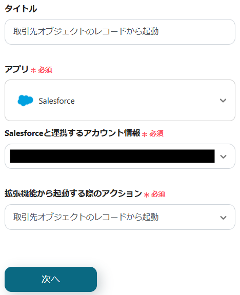 2.Salesforceと連携するアカウントを確認し、「次へ」をクリックします。