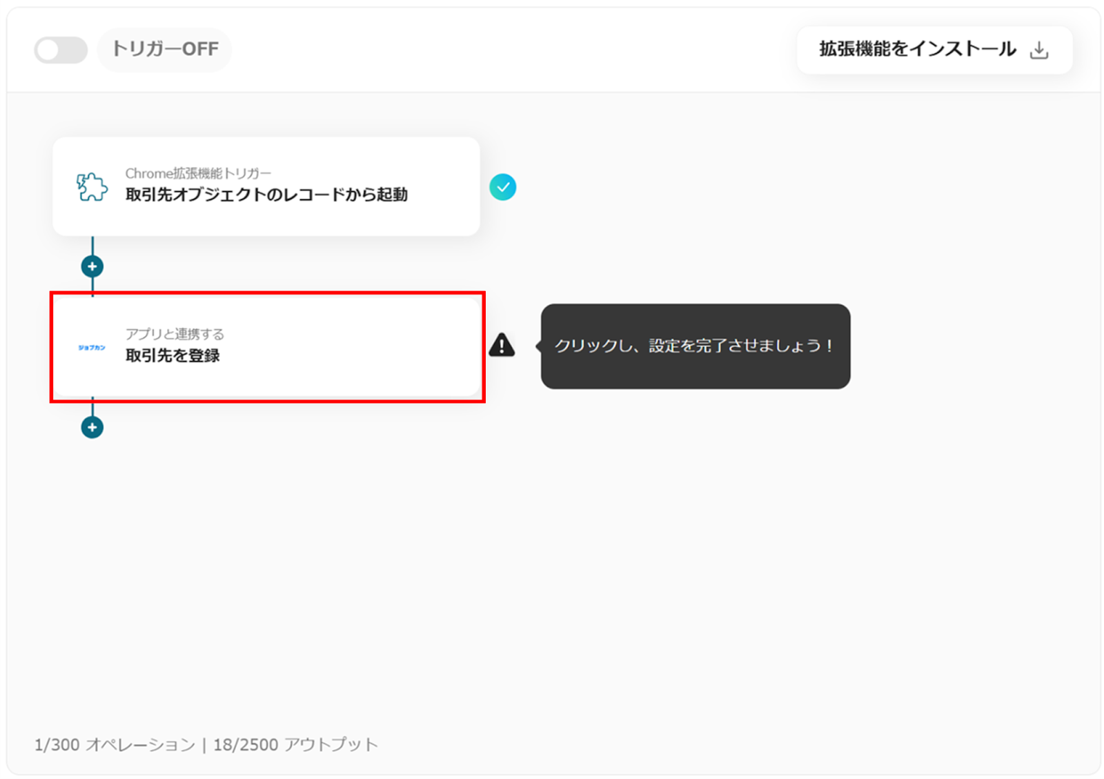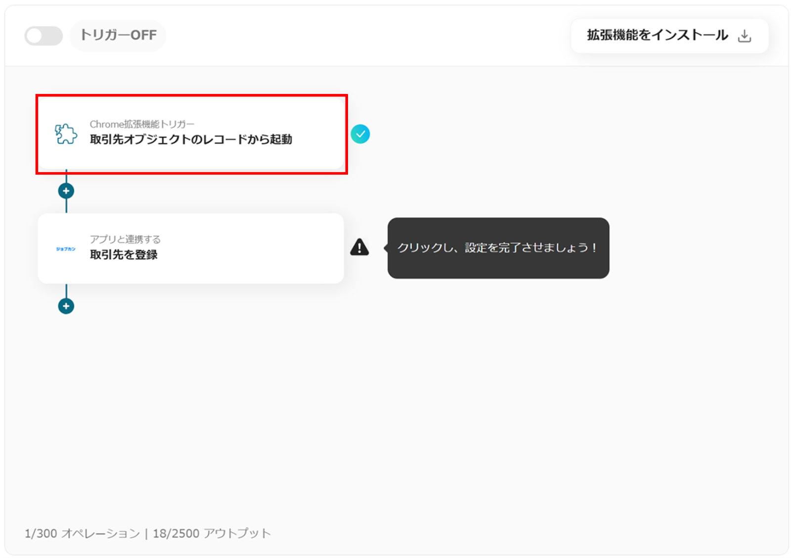 (2)「拡張機能で起動するアプリの連携アカウントとアクションを選択」画面から、Chrome拡張機能を使用したトリガーを使用することで、Salesforce上から直接トリガーを起動させることができます。