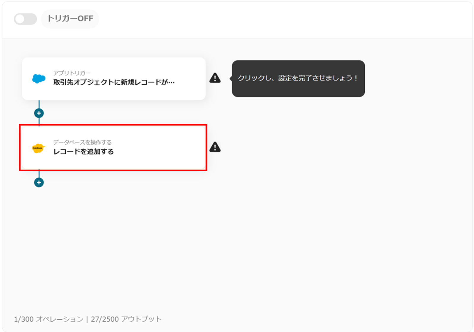 ※Salesforceはチームプラン・サクセスプランでのみご利用いただけるアプリとなっております。フリープラン・ミニプランの場合は設定しているフローボットのオペレーションやデータコネクトはエラーとなりますので、ご注意ください。