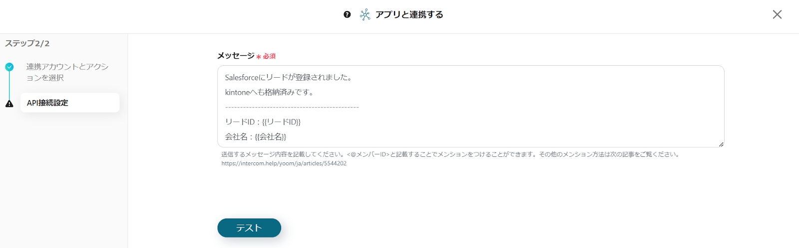 加えて、企業のコミュニケーションツールにSlackを活用している場合は、Salesforceとkintoneへ新規リードを登録した旨が自動で送信されます。