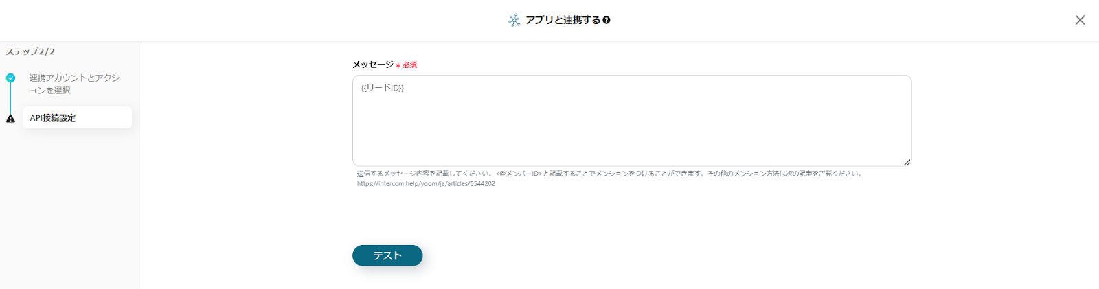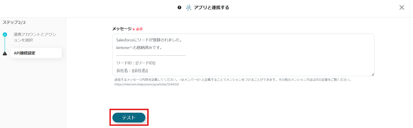 メッセージの設定ができたら、下部にあるテストボタンを押してください。