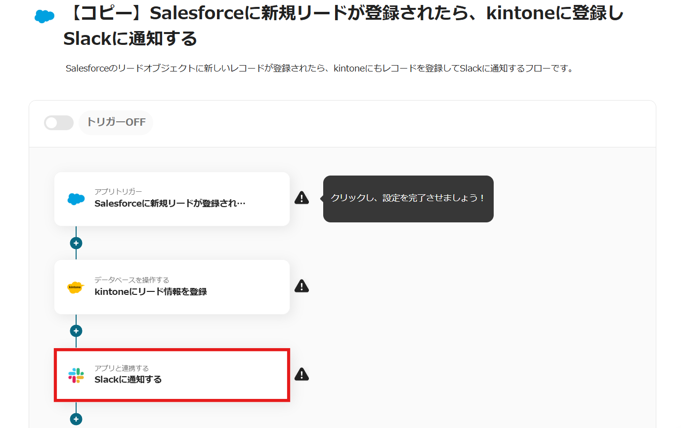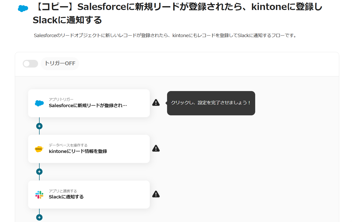 「【コピー】Salesforceに新規リードが登録されたら、kintoneに登録しSlackに通知する」をクリックします。