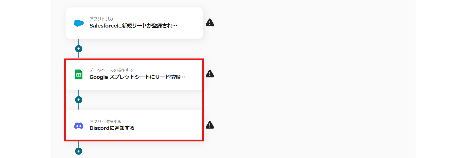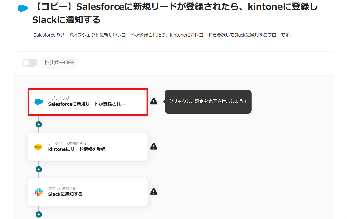 Salesforceのアイコンの「Salesforceに新規リードが登録されたら」をクリックします。