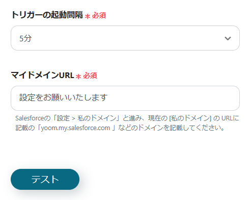 8.取引先IDとマイドメインURLを設定してテストを行います。