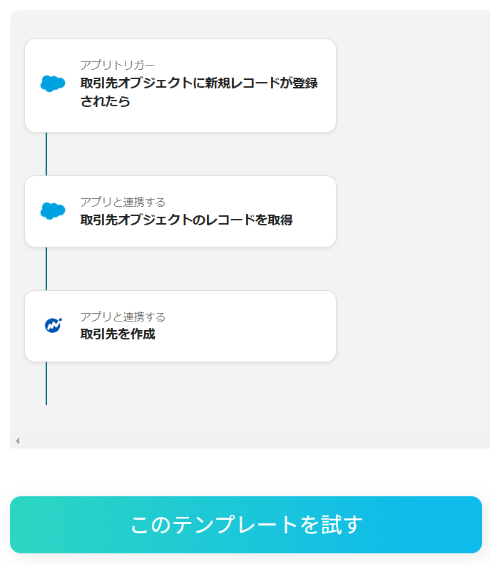 それではここから、ノーコードツールYoomを使って、「Salesforceで発注先が登録されたら、マネーフォワード クラウド債務支払にも追加する」方法を紹介します。