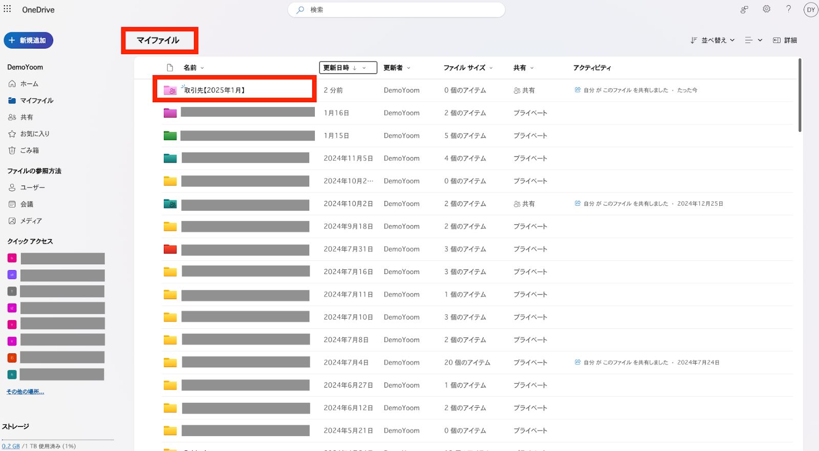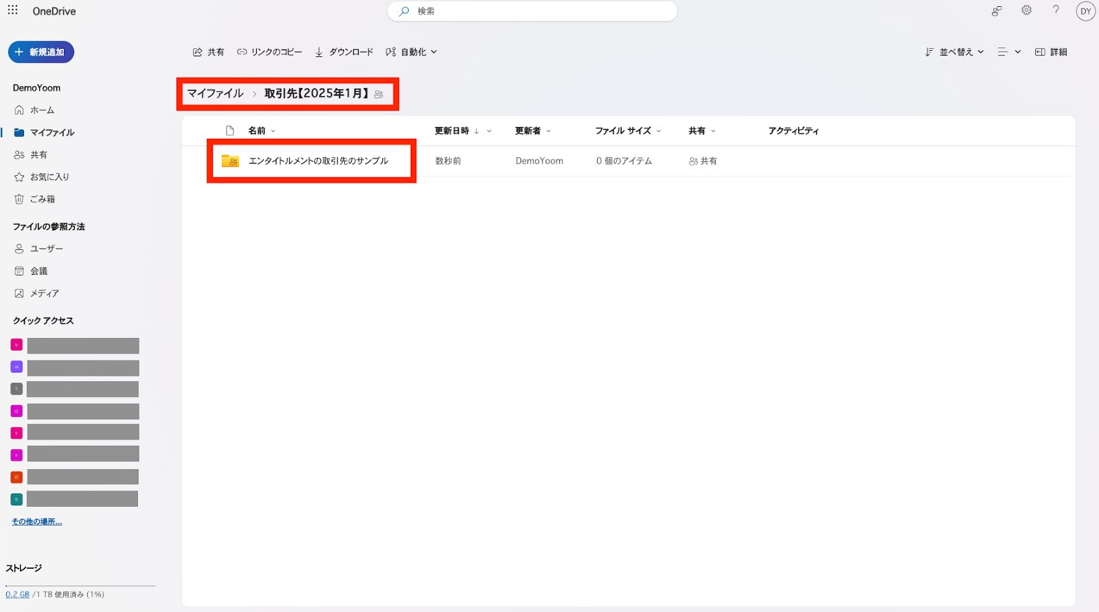 アウトプットと、OneDriveを確認し、取引先フォルダが作成されているか確認してください。