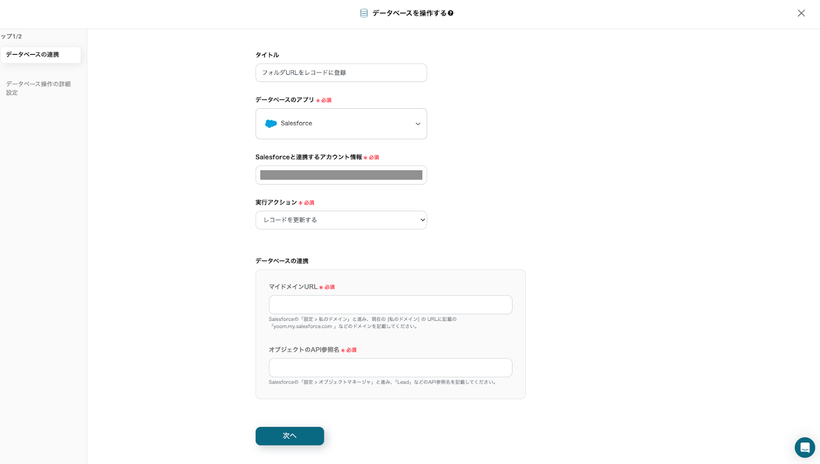 「フォルダURLをレコードに登録」をクリックしてください。