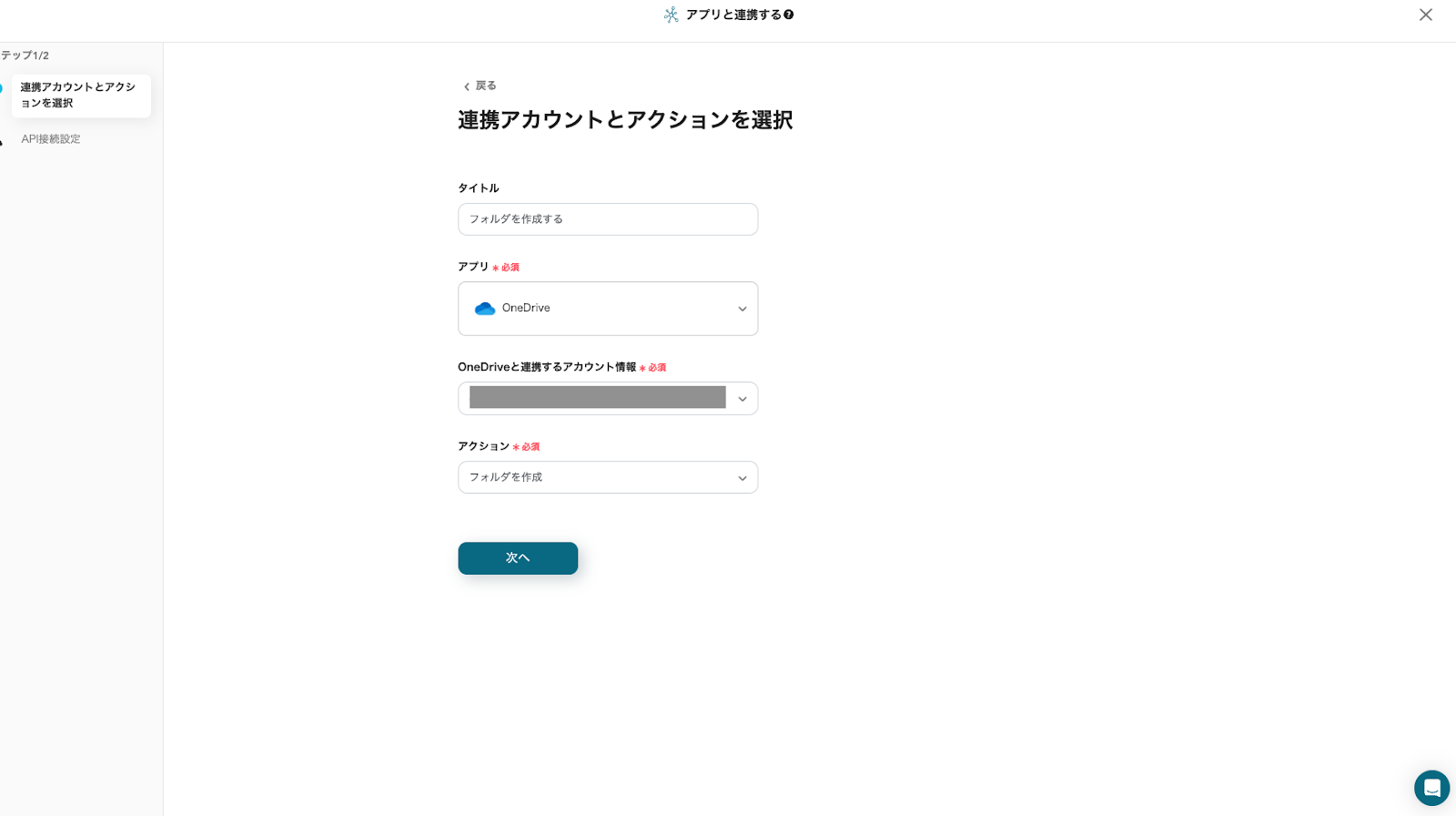 次に、OneDriveで取引先フォルダを作成する設定を行います。