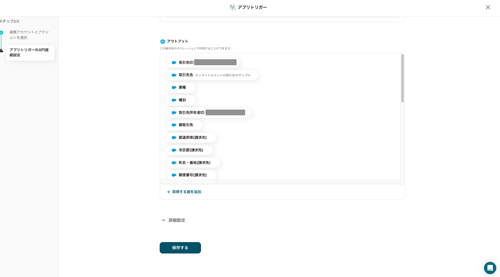 各項目の設定が完了したら「テスト」をクリックし、Salesforceの取引先データが更新されているか確認してください。