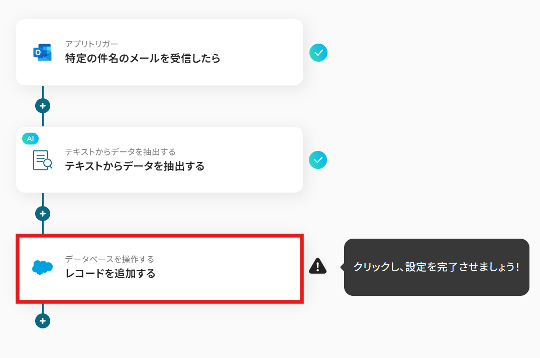 これで、【Outlookに届いた問い合わせメールをSalesforceのリードとして自動登録する】フローが完成しました。