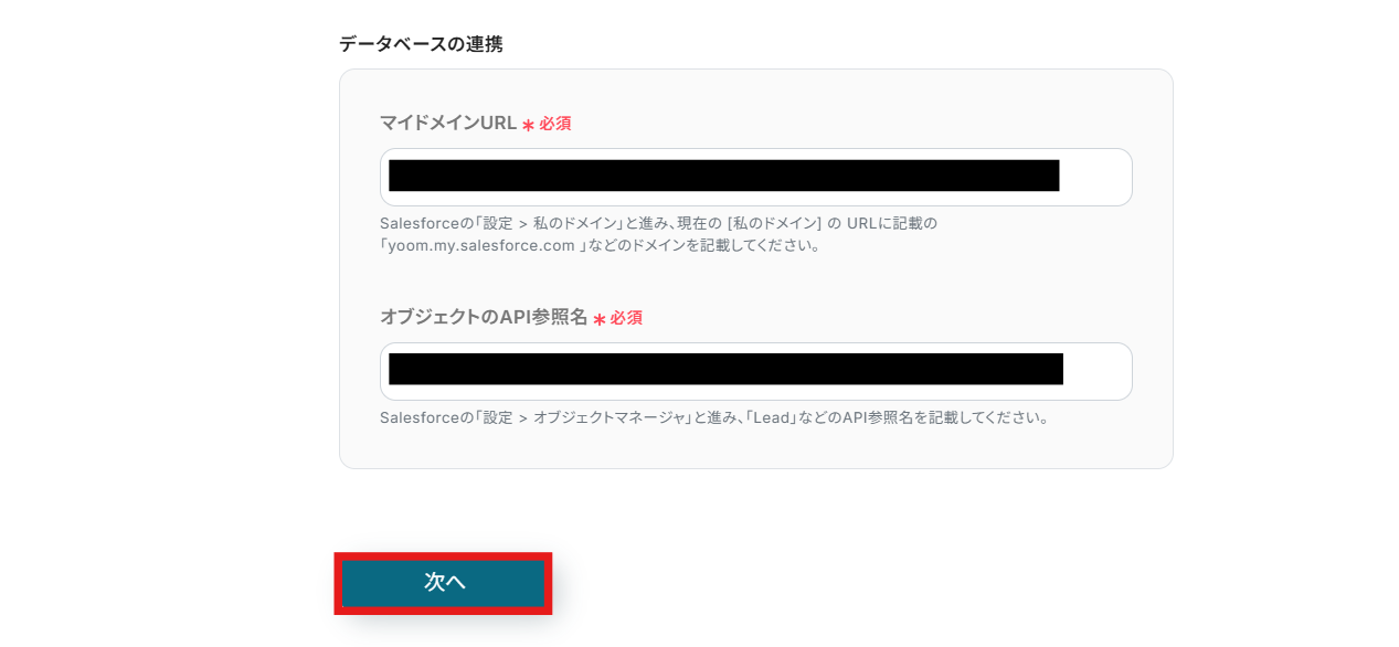 抽出したい項目については、以下の画像のように会社名やメールアドレスなど、Salesforceに追加したいデータを設定してください。