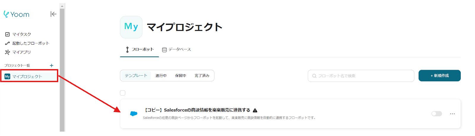 ここからは、Yoomのテンプレート【Salesforceの商談情報を楽楽販売に連携する】という連携フローを使って設定をしていきます。