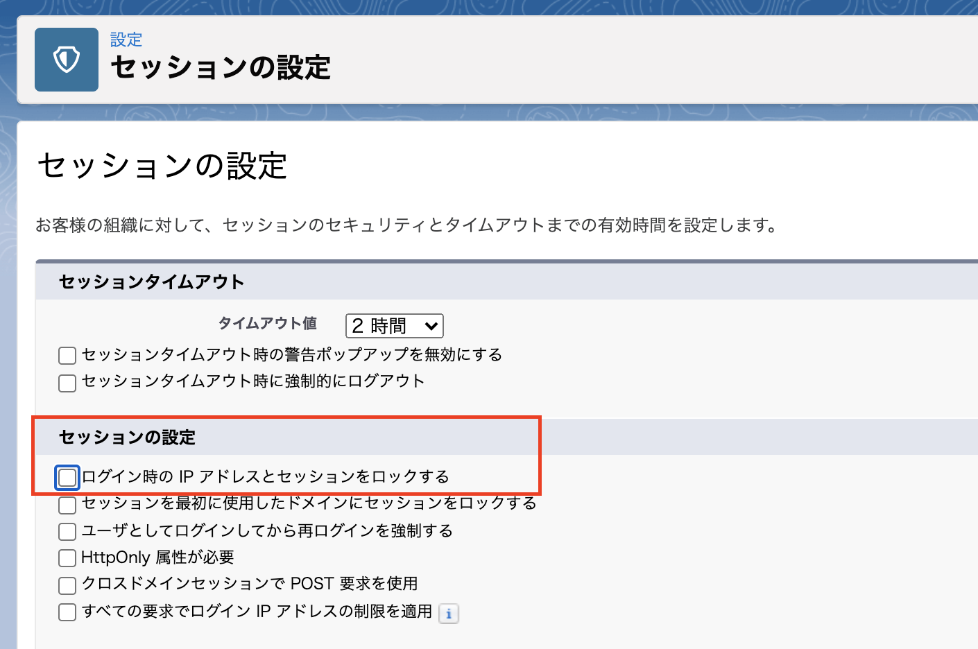 「セッションの設定」内の「ログイン時のIPアドレスとセッションをロックする」からチェックを外してください。