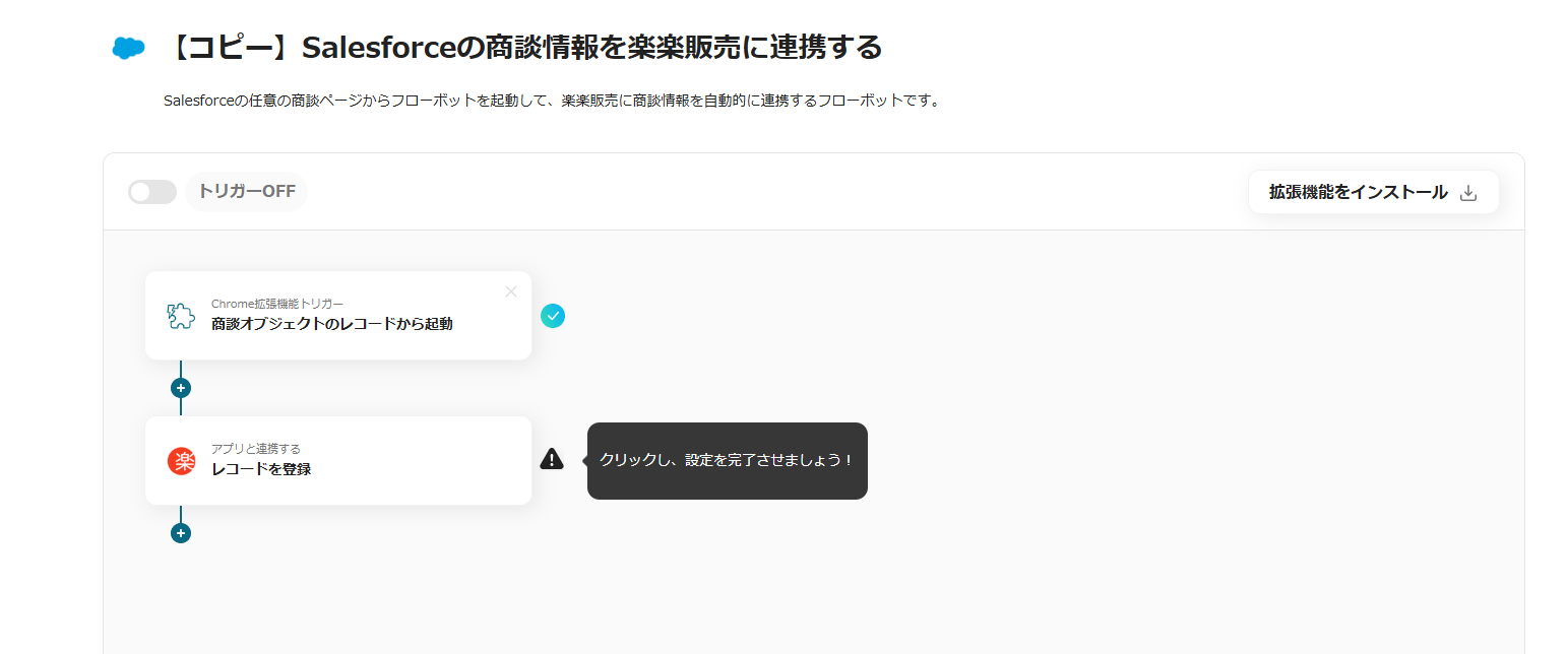 これで【Salesforceの商談情報を楽楽販売に連携する方法】というフローが完成です。