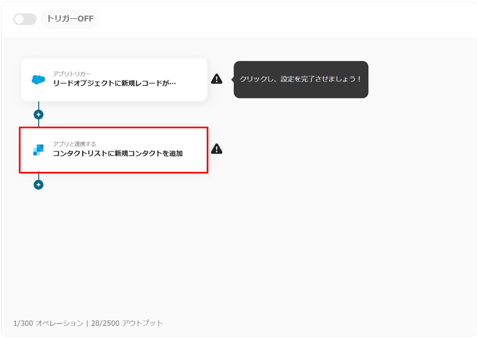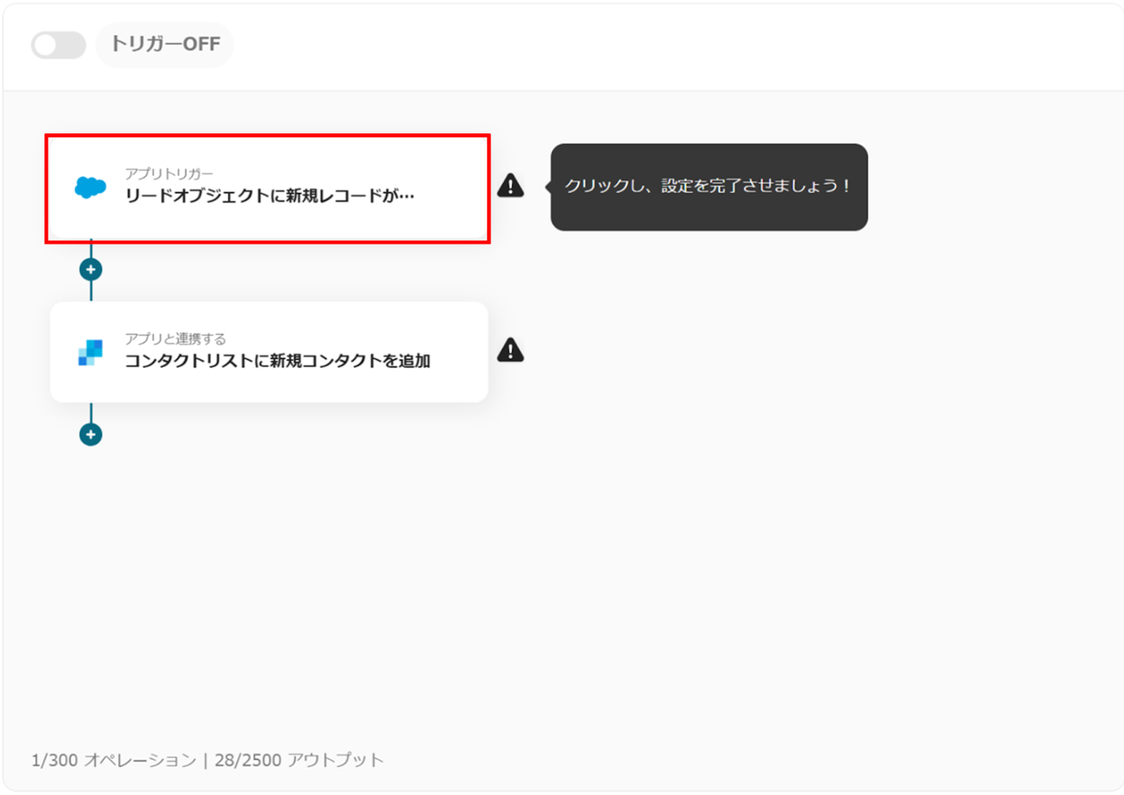 ※Salesforceはチームプラン・サクセスプランでのみご利用いただけるアプリとなっております。フリープラン・ミニプランの場合は設定しているフローボットのオペレーションやデータコネクトはエラーとなりますので、ご注意ください。