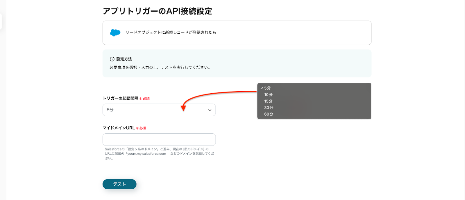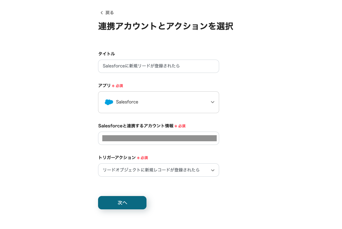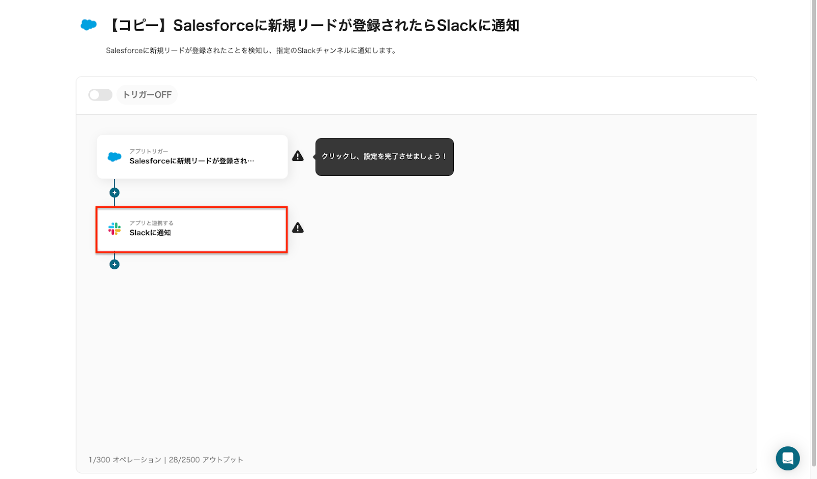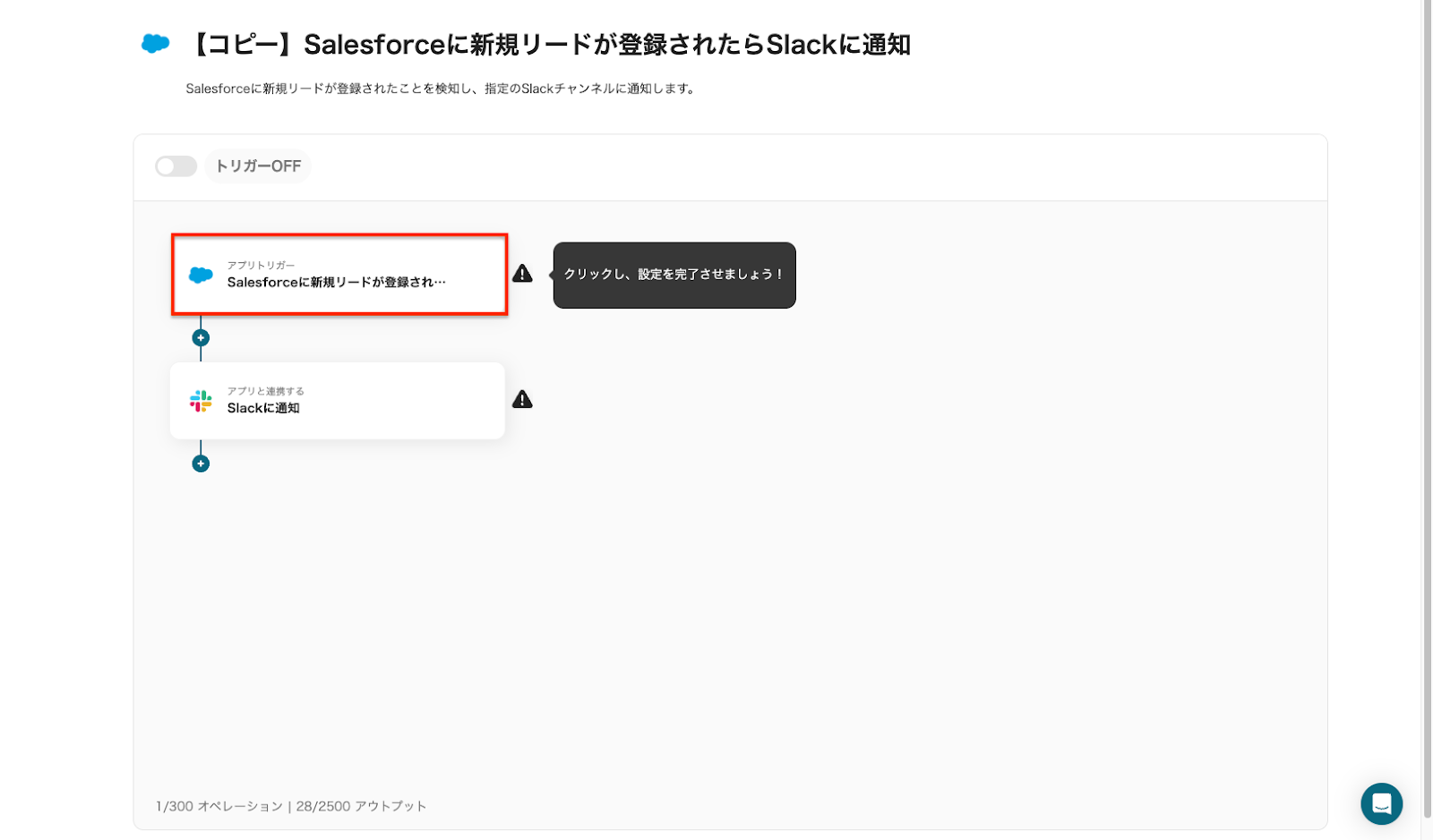「Salesforceに新規リードが登録されたら」をクリックしてください。