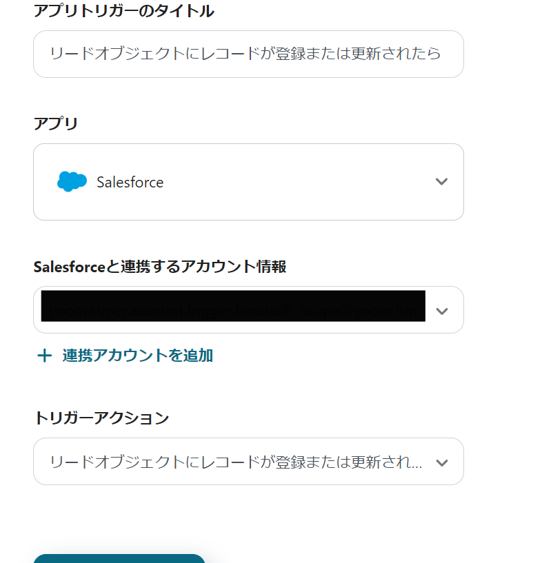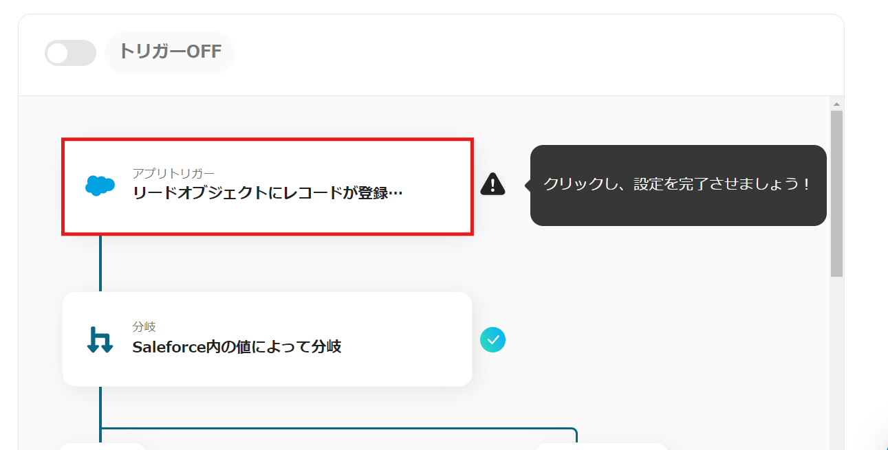3)「アプリトリガー リードオブジェクトのレコードが登録または更新されたら」をクリックします。