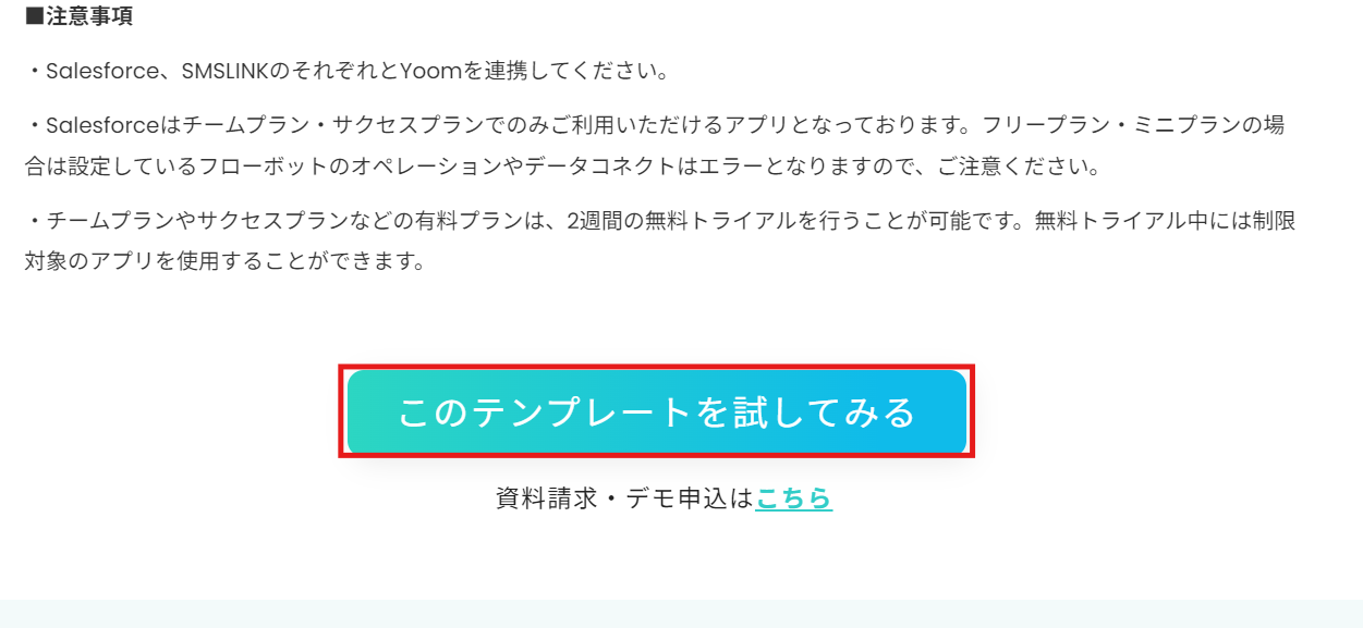 なお、チームプランやサクセスプランなどの有料プランも2週間の無料トライアルを行うことが可能です。