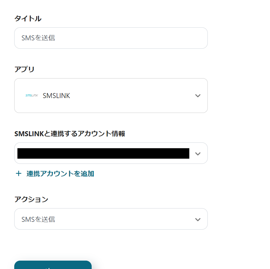 8)アクションは「SMSを送信」を選択して、「次へ」をクリックします。