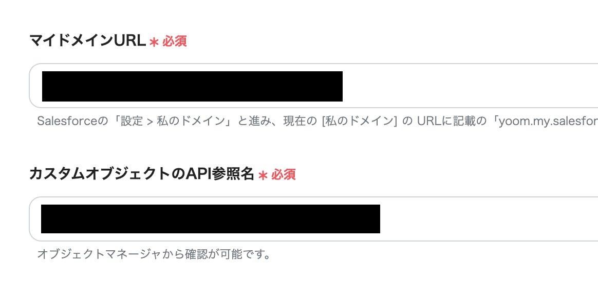 (5)次の画面で「マイドメインURL」や「カスタムオブジェクトのAPI参照名」の項目に注釈に沿って情報を入力していきます。