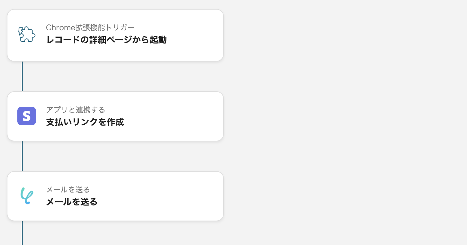 例えば、今回のフローを導入後、カスタムオブジェクトのレコード詳細ページから今回のフローボットを起動することで、Salesforce側の操作のみで支払い用リンクを作成し、顧客へその内容をメールで送付できます。