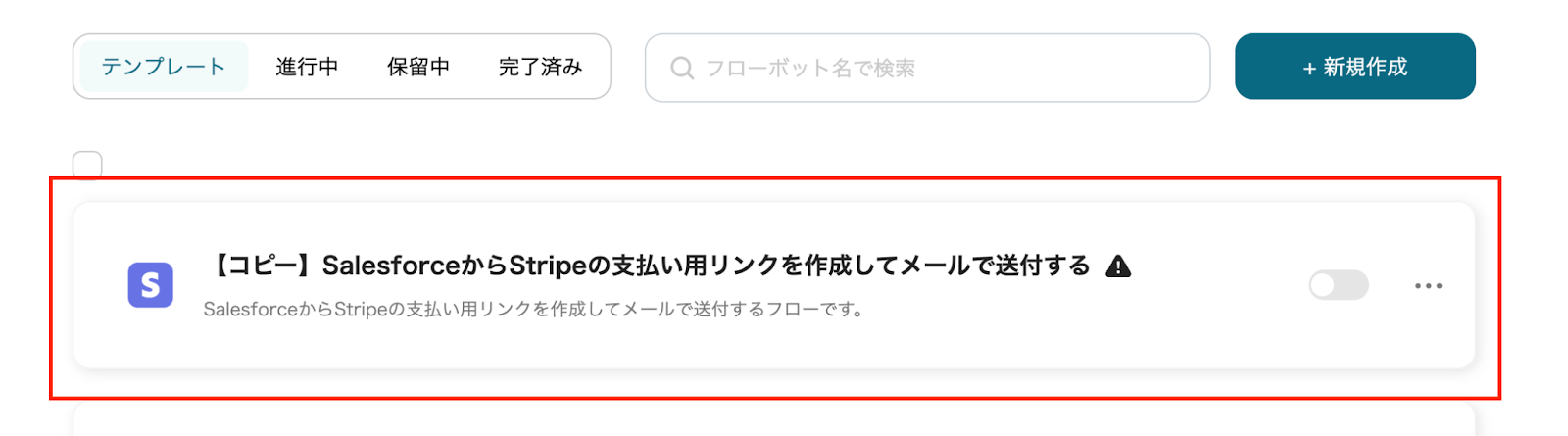 では、「SalesforceからStripeの支払い用リンクを作成してメールで送付する」のテンプレートを使ったフローボットを作成していきましょう。