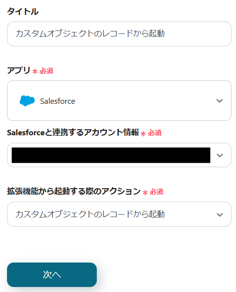 6.Salesforceと連携するアカウントを確認し、「次へ」をクリックします。