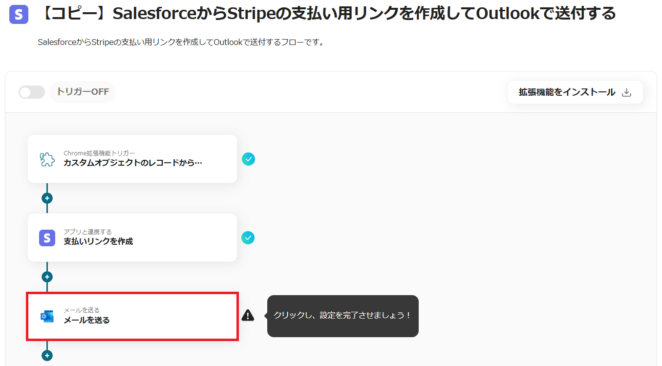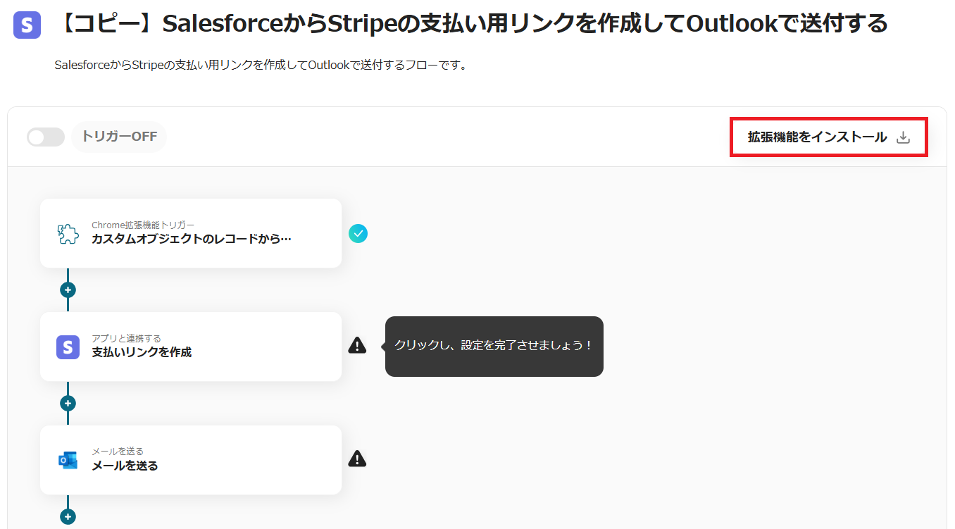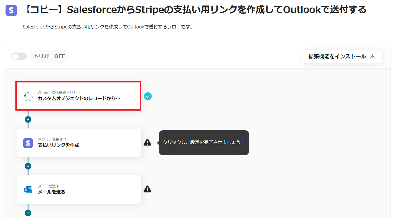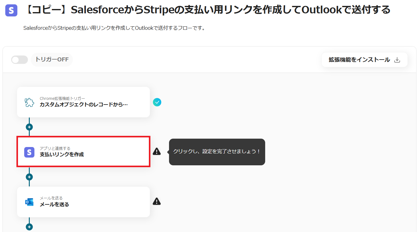 5.トリガーをONにすると、Chrome拡張機能を利用して、SalesforceからStripeで支払いリンクを作成してOutlookで送付できます。