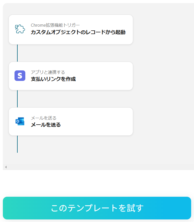 最後に、Salesforceの顧客情報を基にOutlookでStripeの支払いリンクを送信する設定を行います。