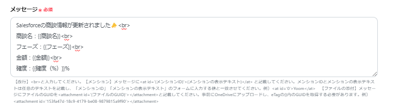 以上で自動化の設定は完了です。今回使用したテンプレートは以下です。