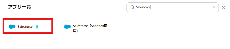 検索窓にSalesforceと入力し表示された候補をクリックします。