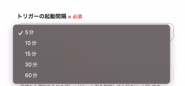 次に、トリガーの起動間隔をプルダウンメニューから選択します。