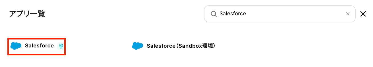 検索窓にSalesforceと入力し、表示された候補からアプリを選択します。