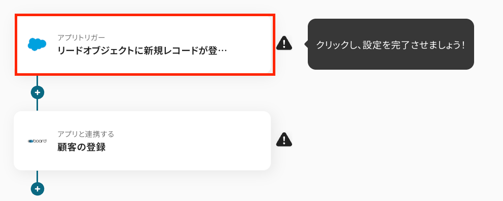 続いて、Salesforceに登録されたリード情報を基に、boardに顧客を自動登録する設定を行います。