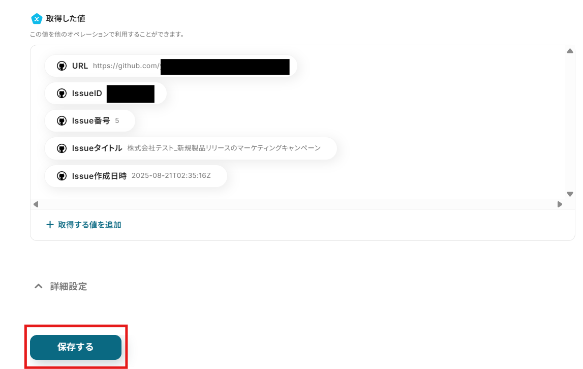 テストが成功したら、「保存する」をクリックして完了です!