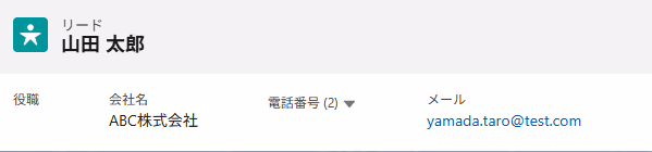 設定の事前準備として、実際に新規レコードを登録しておく必要があります。なお、作成するレコードは架空の情報(「テスト太郎」や「テスト会社」など)でOKです。