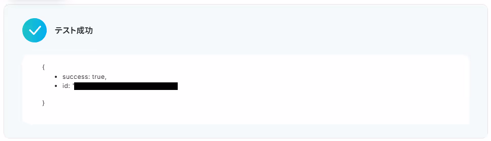 テストが成功すると、下記のようにテスト成功画面と取得した値が表示されます。