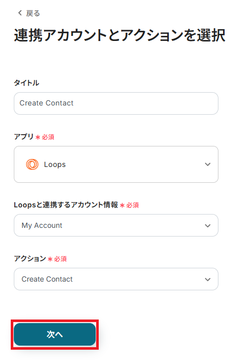 Jotformの回答をもとに、Loopsで連絡先情報を更新する