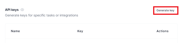 するとAPIキーが発行されるので、「Key」をクリックしてコピーします。