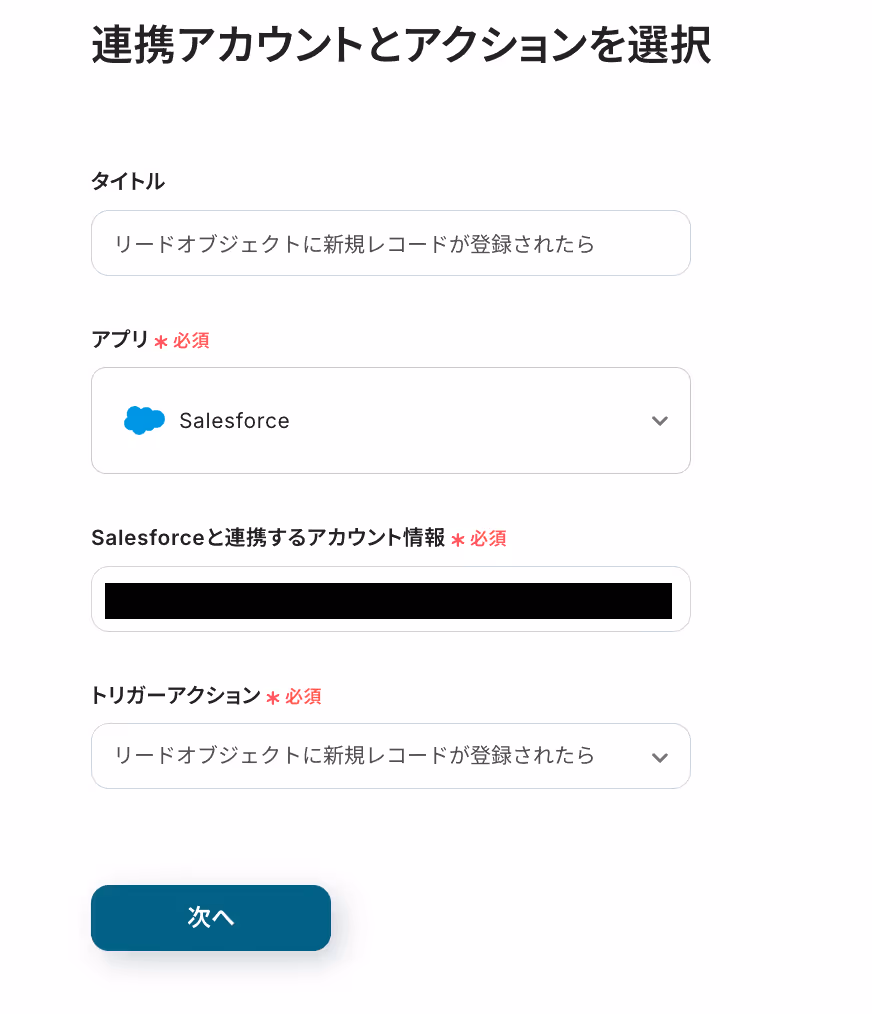 設定完了後は動作チェックのためにテストを行いますので、Salesforceの画面に移り、リードオブジェクトに新規レコードを登録してください。