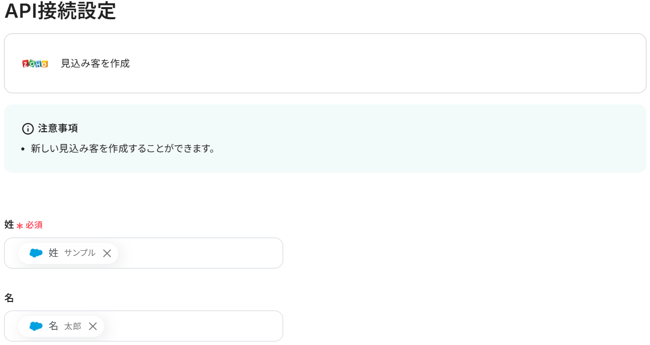 Salesforceから取得した内容をもとに、Zoho CRMで見込み客を登録します。
