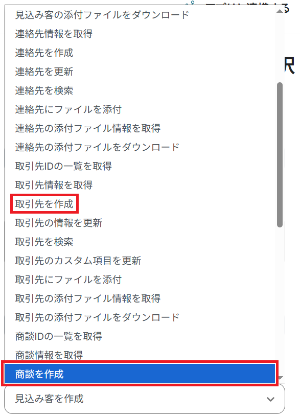 A:取引先や商談なども登録できます。連携アカウントとアクションを選択する画面で、Zoho CRMのアクションを「取引先を作成」や「商談を作成」に変更してください。