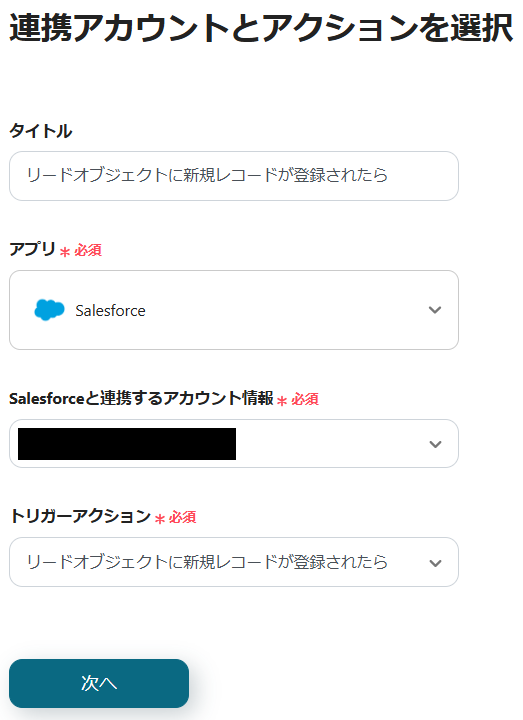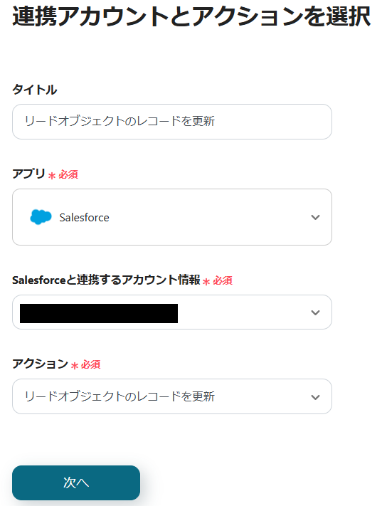 6.Salesforceと連携するアカウント情報を確認して「次へ」をクリックします。