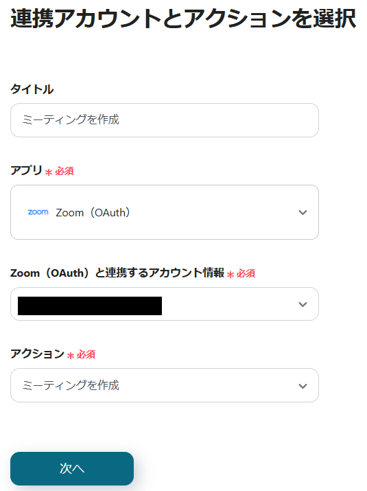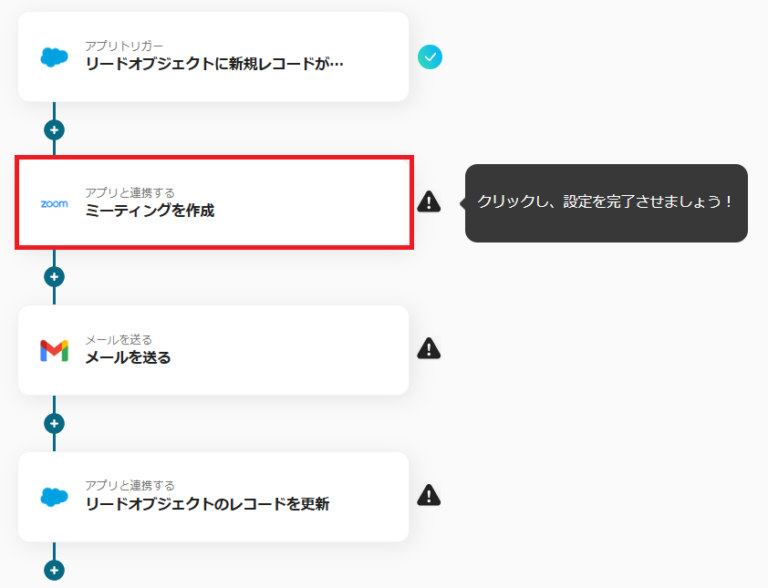 続いて、Salesforceから出力したアウトプットをもとに、Zoom会議を作成する設定を行います。